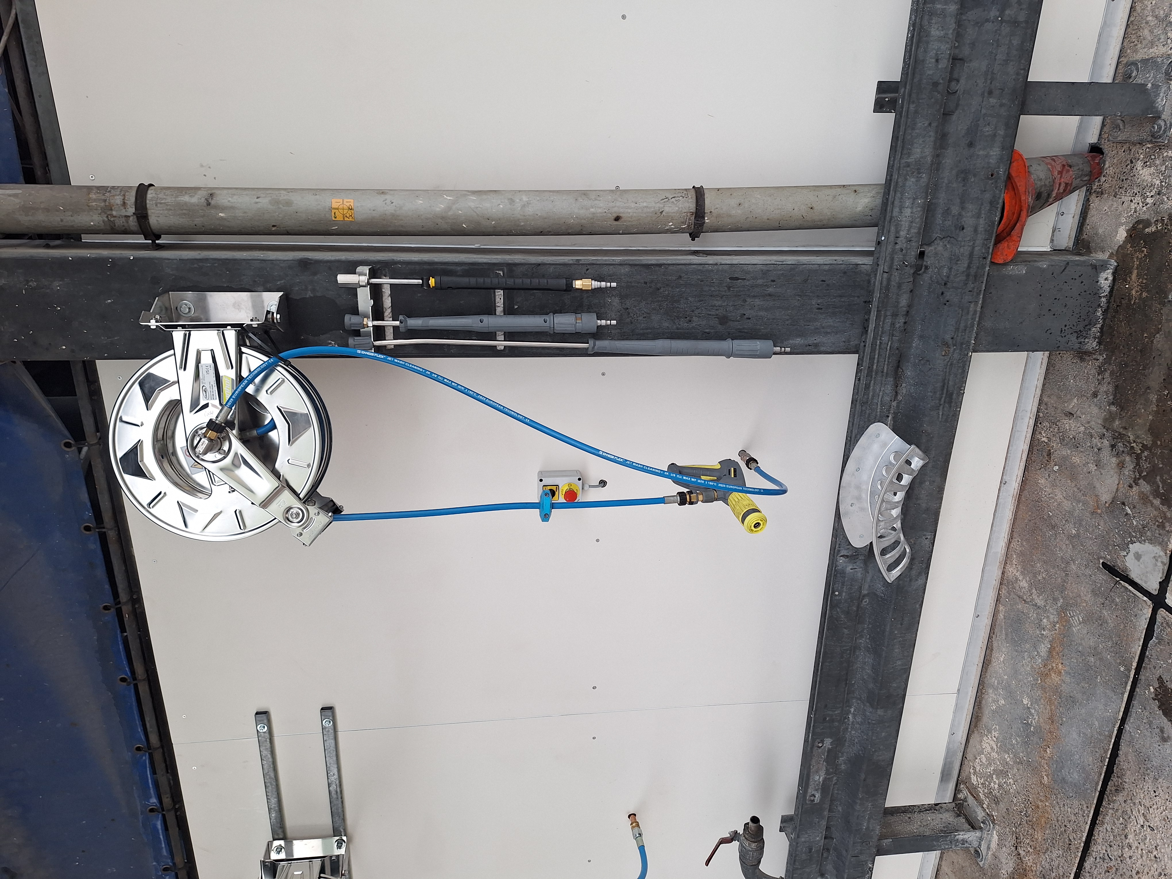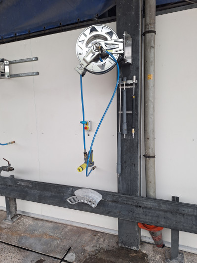 Op de wasplaats zijn beide machines uitgerust met hogedrukslanghaspels met snelwissel voor meerdere spuitlansen, waaronder een schuimlans om de machines eenvoudig in te schuimen.